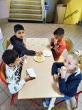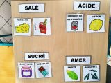Dernier atelier ! Travail autour de 4 saveurs : sucré, salé, acide et amer. Voici les photos (et les grimaces quand ils ont goûté les aliments acides 😂)